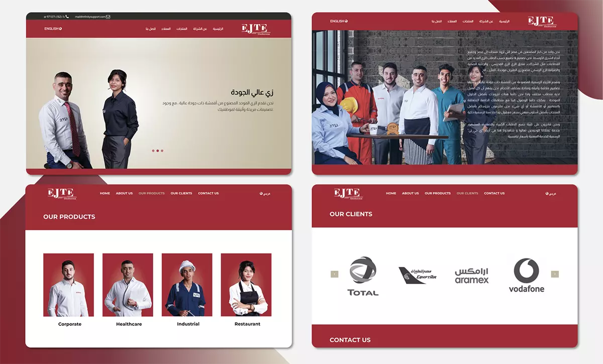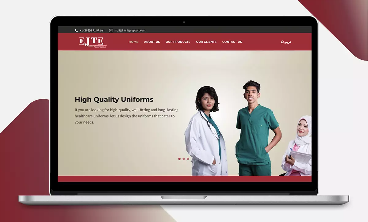 The website was designed for a uniform-making company to display their services. It's a bilingual platform, available in both English and Arabic, built using Laravel with Voyager for the admin panel, ensuring easy content management and a smooth user experience.